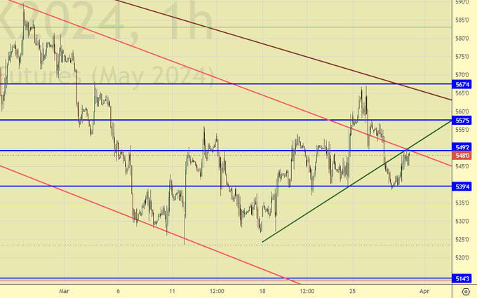 Продажа: нет. Кто в позиции от 554.4, перенесите стоп на 559.0. Цель: 515.0.