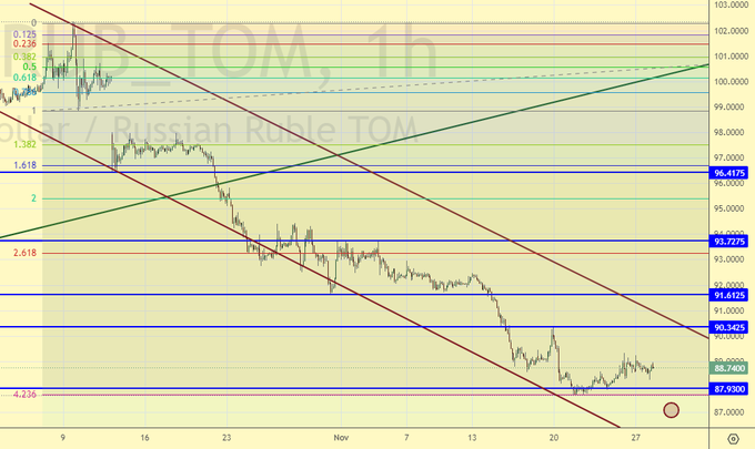 Если спот простоит на тех-же уровнях еще пару дней, то с точки зрения техники появится шанс на продолжение укрепления рубля. Фундаментально нам бы хотелось понимать, где будет находиться нефть, и чем за неё будут платить. Снижение поступления долларов и евро может вызвать рост спроса на эти валюты.