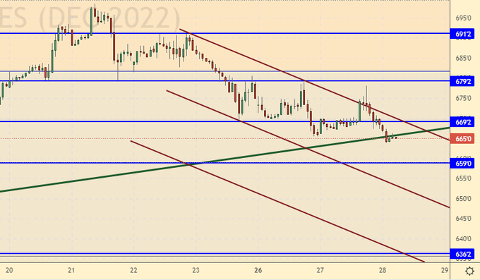Надо пробиваться ниже 660.0, тогда падение ускорится и мы быстро окажемся на 600.0, а там и ход на 550.0 нельзя будет исключить. При этом текущий район интересен для покупок. Войти в лонг можно после появления длинной зеленой свечи.