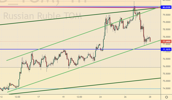 Покупка: нет. Кто в позиции от 76600, 76000 и 75700, держите стоп на 77200. Цель: 82500 (120000?!).