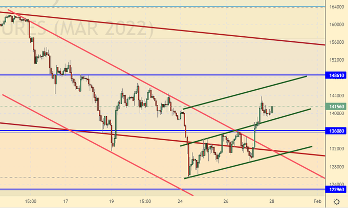 Продажа: при подходе к 155000. Стоп: 165000. Цель: 105000. Кто в позиции от 145000, перенесите стоп на 137000. Цель: 105000.