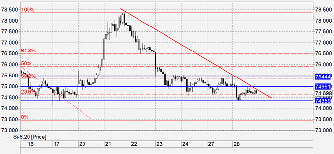 Покупка: после роста выше 75200. Стоп: 74400. Цель: 80200.