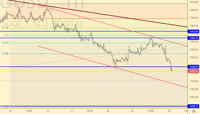 После того как Пауэлл (председатель ФРС) жестко высказался по поводу инфляции, у доллара только один путь – наверх. А у всего, что торгуется за доллары – вниз. Мы в состоянии дойти до 1678 после чего будет некоторая пауза, а дальше мы пойдем на 1600.