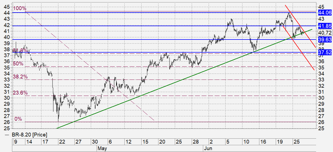 В случае падения цен ниже 40.00 начнется полноценный коррекционный ход к 30.00. Текущая ситуация привлекательна для продаж.