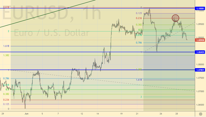 Продажа: нет. Кто в позиции от 1.0950, перенесите стоп на 1.0960. Цель: 1.0780.