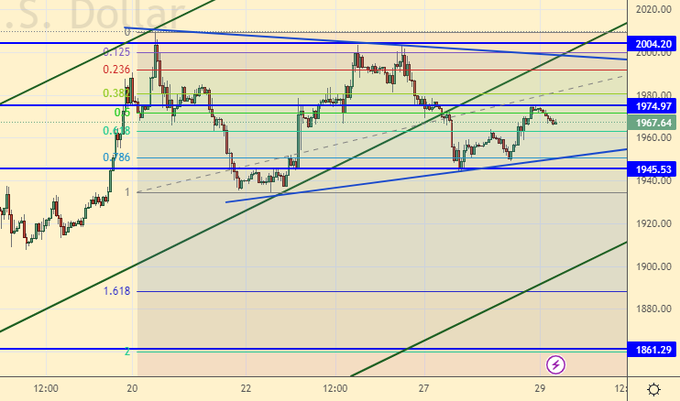 Доллар пока продолжит оставаться сильным. Движение вверх по золоту не отрицаем, но оно будет тяжелым. В случае же разрядки к 1860, рост в дальнейшем может идти весьма бодро. Рынок выглядит тяжелым.