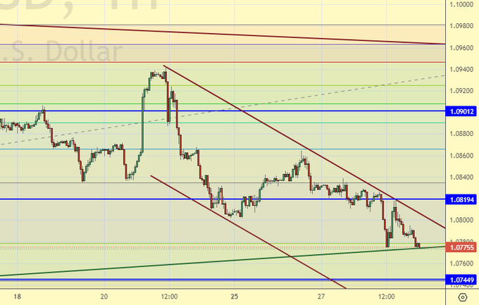 Продажа: нет. Кто в позиции от 1.0934, перенесите стоп на 1.0830. Цель: 1.0360.