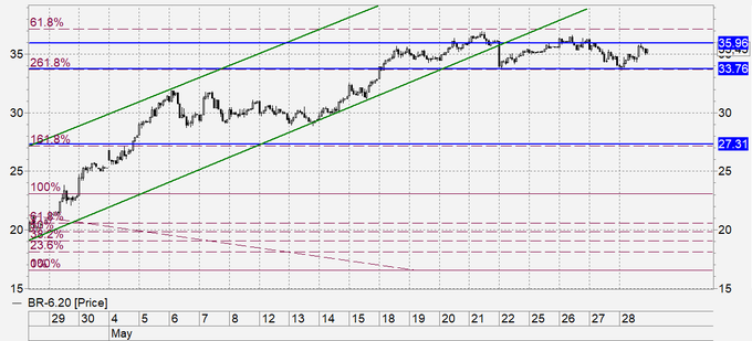 Вчера данные по коммерческим запасам нефти в США от EIA продемонстрировали существенный рост, как и данные от API днем ранее, +7.928 млн. баррелей за неделю. Рынок получил цифры, но не стал уходить ниже 33.50. За быков сыграло сообщение о том, что Канада сократит добычу на 1 млн. баррелей в сутки.