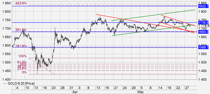 Пока рынок находится под 1735 будем смотреть вниз. В противном случае придется быстро переворачиваться и подстраиваться под ход к 1830. На рынке появились слухи о том, что ряд крупных единичных продавцов на LME скинули большие объемы золота за последние дни. Кто-то видит в этом попытки правительства США не допустить обесценивания доллара, мы же видим понимание рядом крупных участников того факт, что цены вряд ли и дальше будут расти.