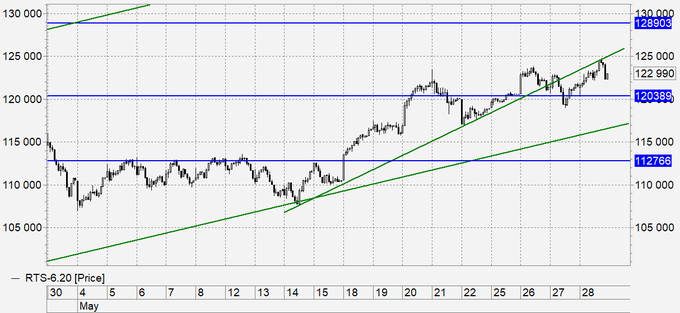 Продажа: после падения ниже 120000. Стоп: 123600. Цель: 113000.