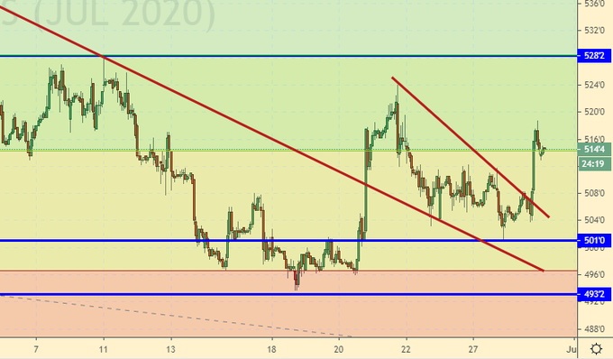 Ослабление доллара способствовало рывку цен вверх. Это давно ожидаемый нами ход, который может привести к отправке состава на станцию 550.0. До середины июля месяца, пока не будет ясности по новому урожаю мы должны расти.