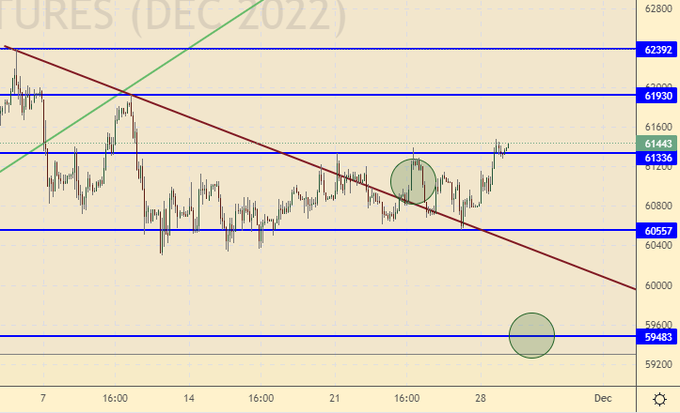 Покупка: при подходе к 59400. Стоп: 58800. Цель: 70000. Кто в позиции от 61000, держите стоп на 60540. Цель: 70000.
