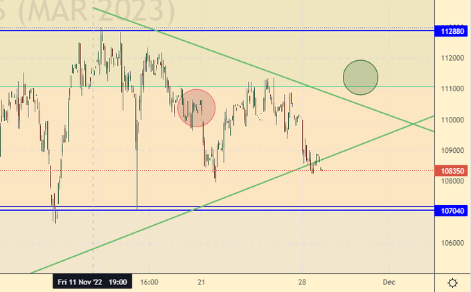 Индекс падает из-за падения цен на нефть и ослабления рубля. Кумулятивный эффект привел к тому, что мы ушли ниже 109000, если уйдем ниже 108000, то нас ждет ход на 103000.