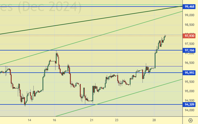 Состоялся вынос. Состоялся вынос мозга. Мы смели все возможные сопротивления и поставили новый максимум. Ближайшее сопротивление 99500 далее 104500. От 104500, может быть, увидим откат.