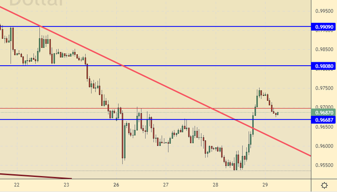 Продажа: в случае роста к 0.9800. Стоп: 0.9900. Цель: 0.8600.