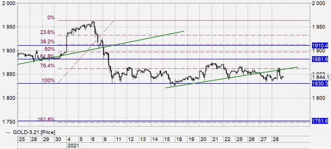 Предварительный ВВП в США вышел на уровне 4%, некие аналитики предполагали 4.4%. На этом, прямо скажем, надуманном, расхождении быки попытались закрепиться выше 1850. У них ничего не получилось и теперь, в результате этой неудачи, тучи над золотом сгустились еще сильнее. Ждем хода на 1750.