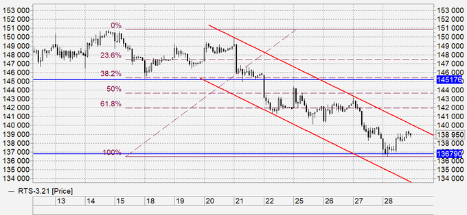 Рынок достиг весьма значимой цели на 137000. Здесь можно думать о частичной фиксации прибыли, но мы смотрим еще ниже, в район 130000. Таким образом, основную часть позиции пока можно держать. Сложно представить, что сейчас послужит драйвером разворота вверх. По факту, падающая Европа потащила Россию за собой. Поступления в бюджет от продажи сырья рухнули на 40% в 2020-м по сравнению с 2019-м.