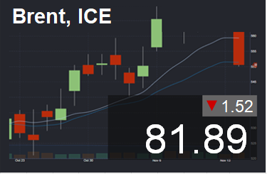 Цена в долларах за баррель. Для пересчета в доллары за тонну нефти марки Brent, необходимо цену умножить на 7,59.