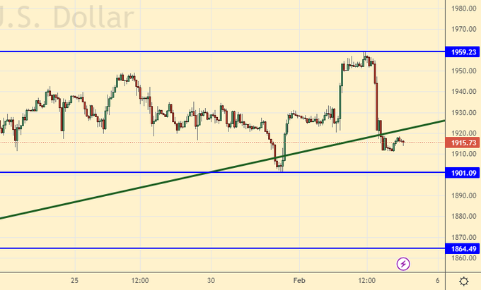 Продажа: нет. Кто в позиции от 1950, перенесите стоп на 1952. Цель: 1800.