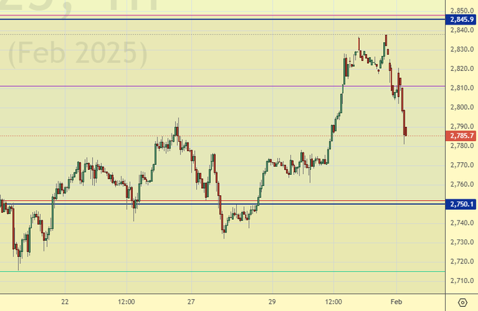 Товарищ Т. ввел пошлины, причем для Канады и Мексике. Но вешаться уже заранее начали в Европе. Даже финны. Чтобы финны на что-то среагировали, надо было просто выйти из себя, вернуться, и снова выйти. Видим, что нефть пока стоит, хотя индекс доллара отправился вверх. Такого резкого редактирования экономики в ручном режиме мы не видели со времен посещения мистером Чингисханом Европы со своими обученными ордами. Монголы тоже считали, что им все должны.