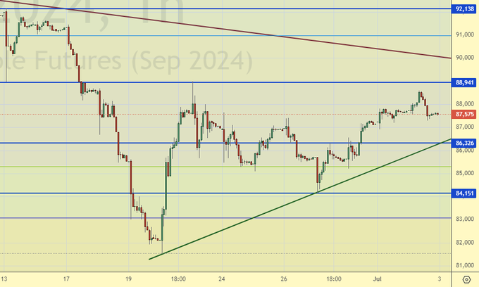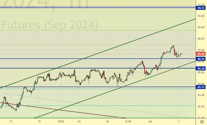Покупка: нет. Кто в позиции от 85.39, перенесите стоп на 85.10. Цель: 99.90.