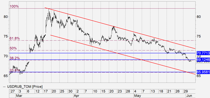 Продажа: нет. Кто в позиции от 70.80, перенесите стоп на 69.30. Цель: 66.10.