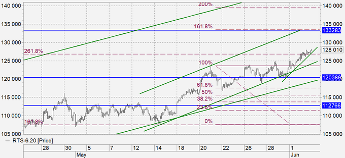 Рынок продолжил рост. Есть и фундаментальные, и технические предпосылки для движения к 133000. С другой стороны, восстановление от 80000 можно признать агрессивным, поэтому, к любым сигналам разворота стоит относиться серьезно, так как мы можем спокойно пройти вниз не менее 10000 пунктов из-за текущей перекупленности.