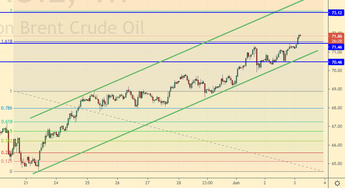 Покупка: кто в позиции от 70.40, перенесите стоп на 70.60. Цель: 73.10 (75.80).