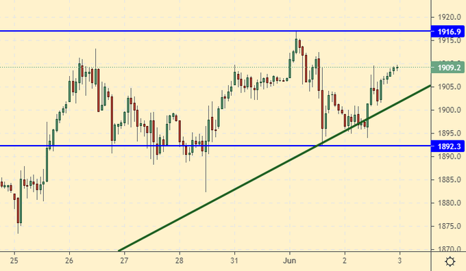Покупка: нет. Кто в позиции от 1900 и 1890, перенесите стоп на 1888. Цель: 2000.