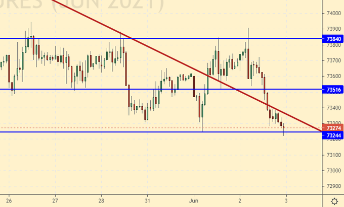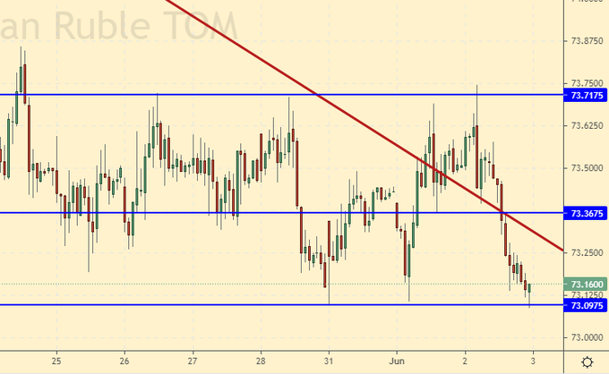 Покупка: после роста выше 73.75. Стоп: 73.36. Цель: 80.00.