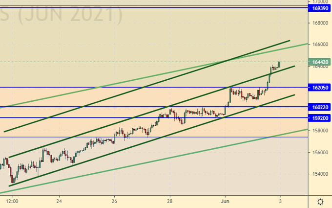 Покупка: нет. Кто в позиции от 154800 и 155000, перенесите стоп на 159400. Цель: 169000.