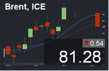Цена в долларах за баррель. Для пересчета в доллары за тонну нефти марки Brent, необходимо цену умножить на 7,59.