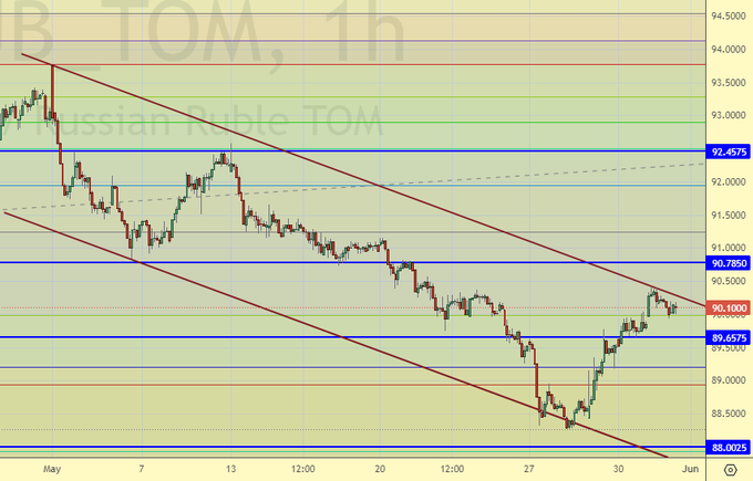 Продажа: кто в позиции от 90.14, держите стоп на 90.90. Цель: 86.00.
