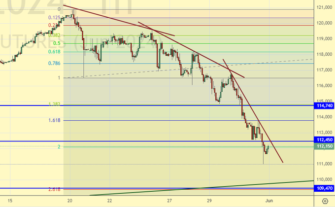 Продажа: нет. Кто в позиции от 118960, перенесите стоп на 112600. Цель: 100000.