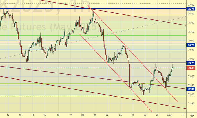 Продажа: нет. Кто в позиции от 73.50, держите стоп на 74.50. Цель: 69.00.
