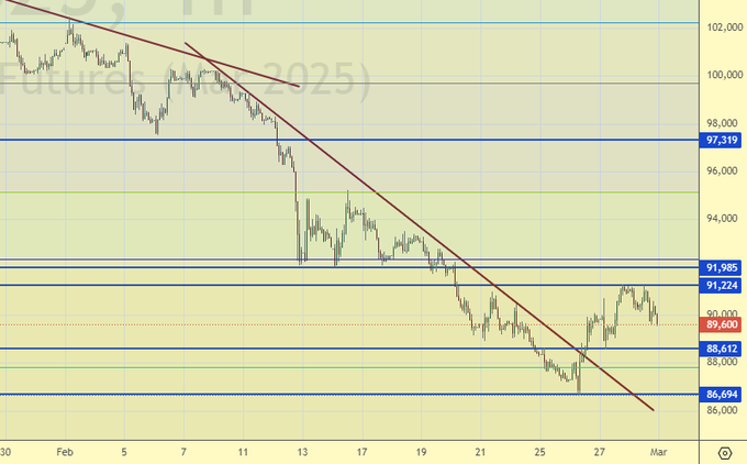 Покупка: нет. Кто в позиции от 88500 и 89800, держите стоп на 88400. Цель: 115000.