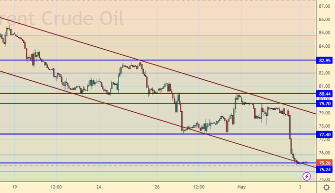 Продажа: нет. Кто в позиции от 82.50 и 82.00, перенесите стоп на 80.80. Цель: 78.00.