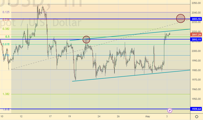 Продажа: при подходе к 2030. Стоп: 2038. Цель: 1940 (1860).