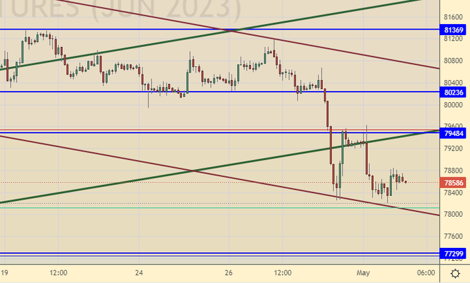 Покупка: при откате к 77300. Стоп: 76700. Цель: 88000. Кто в позиции от 78400, держите стоп на 77800. Цель: 88000.