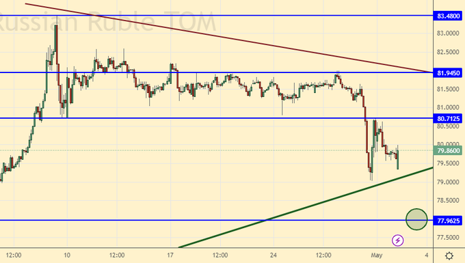 Покупка: при откате к 78.00. Стоп: 77.40. Цель: 84.25 (88.00).