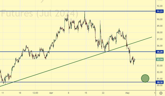 Рынок близок к сильным уровням поддержки. Отскок вверх от района 80.00 напрашивается, при этом не факт, что мы сможем поставить новый максимум (уйдем выше 92.00) без каких-либо сильных новостей.