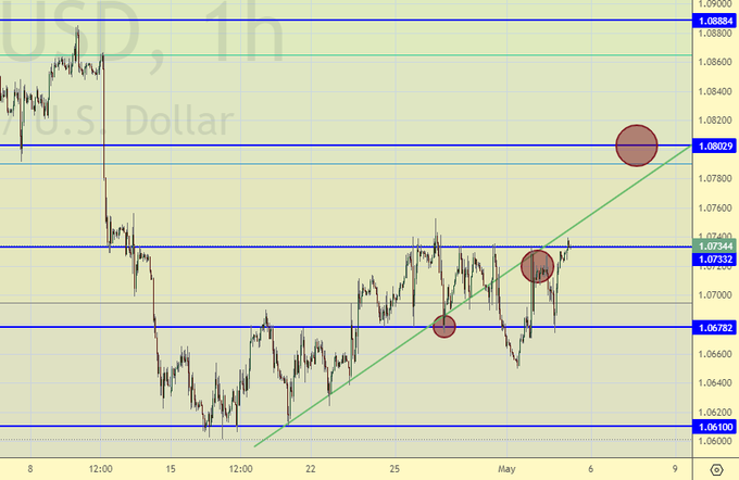 Продажа: при подходе к 1.0800. Стоп: 1.0860. Цель: 1.0000! Кто в позиции от 1.0720 и 1.0690, держите стоп на 1.0743. Цель: 1.0000.