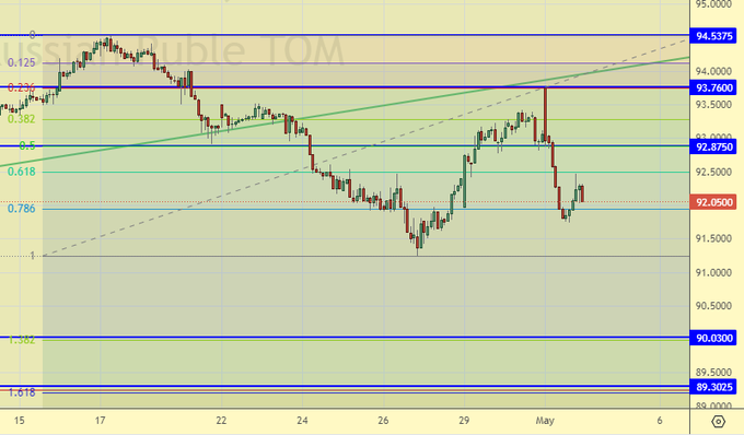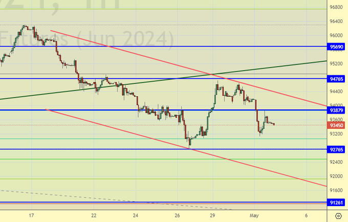 Продажа: нет. Кто в позиции от 93.04, перенесите стоп на 93.60. Цель: 89.40 (пересмотрена).