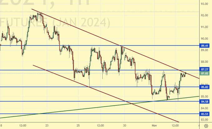 Покупка: нет. Кто в позиции от 85.43, перенесите стоп на 85.10. Цель: 95.00.