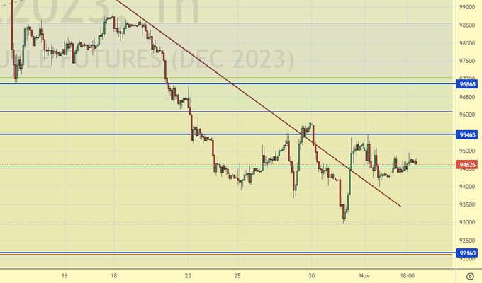 Продажа: при подходе к 96.00. Стоп: 97.00. Цель: 87.00. Кто в позиции от 93.60, держите стоп на 93.80. Цель: 87.60.