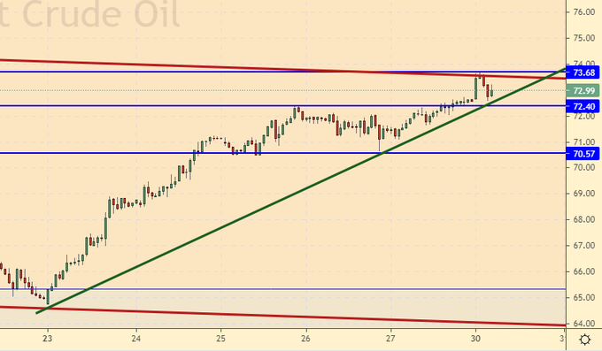 Цены будут пытаться сегодня вырасти выше 74.00. Если это произойдет, то с точки зрения техники можно будет говорить о том, что рынок посмотрел на 95.00.