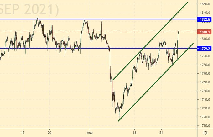 Золото продолжает укрепляться после беззубой речи Пауэлла в пятницу. Расставаться с драгоценным металлом сейчас, когда дорожают все активы, смысла никакого нет. При возврате цен к 1800 можно покупать.