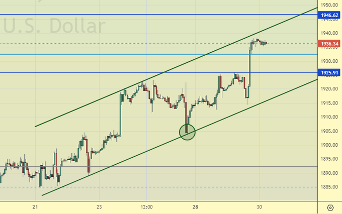 Покупка: нет. Кто в позиции от 1905, перенесите стоп на 1909. Цель: 2400?!