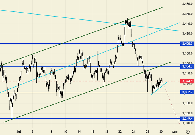 Продажа: нет. Кто в позиции от 3390, перенесите стоп на 3400. Цель: 3000 (2800).