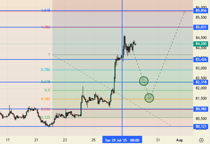 Покупка: Кто в позиции от 80248 и 82000, перенесите стоп на 80900. Цель: 100000.